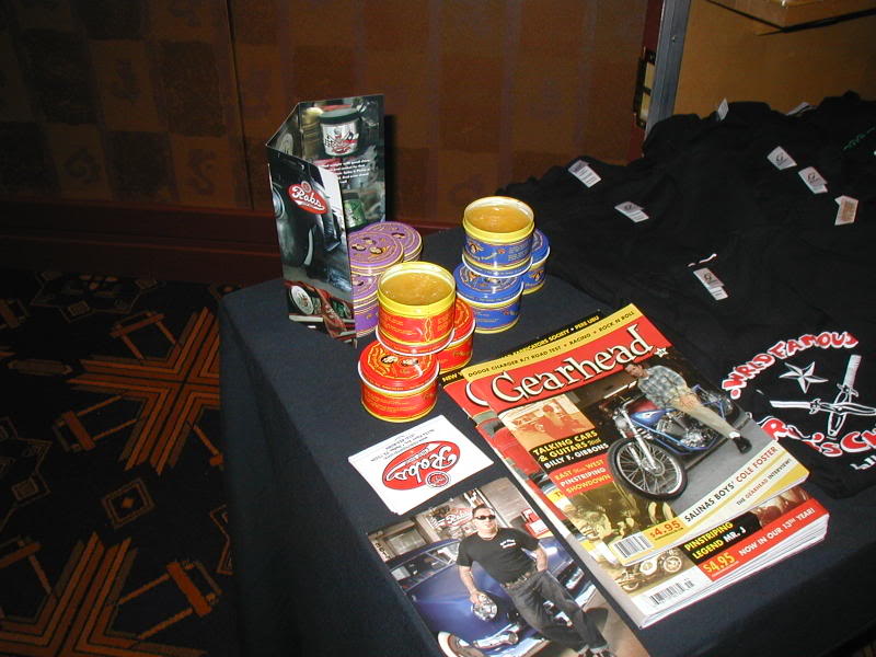 There were booths and stalls selling all types of retro fifties gear: hair pomades, creepers, cowboy shirts, pants and jackets, garter belts and fezs. One guy’s even selling fifties luggage and camping gear. And the people are dressed the part. There’s the ‘Leave it to Beaver’ look with glasses (Smutty called them “the Mayberrys”), the hot rod/biker look (occasional leather jacket which is the preferred choice of the Japanese standard bearers), there are also Mexicans with 40’s looking zoot suits, big hats and bow ties, the clean cut western suited guys who would have been welcome in Hank Williams’ band at the Grand Ole Opry, as opposed to the suited Brooklyn guys who look more like something out of the first 30 minutes of Goodfellas. Ladies have the sex bomb look, the bad girl look, the 40’s look, the 50’s poodle skirt look, and the Bettie Page look. Of course, if they wear glasses, it’s got to be cat eyes. And there are lots of tattoos. It seems everybody has a tattoo. These are tribes, tribes of which I am no longer a member.